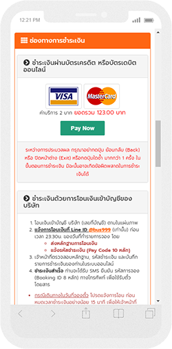 - หลังจากสำรองที่นั่ง กรุณาชำระเงินภายในระยะเวลาที่กำหนด